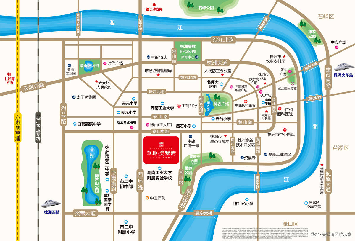 华地·美墅湾,华地集团首入株洲匠心之作,择址天元江湾城芯,周边配套醇熟,“三纵三横”多维交通轻松畅达新老城商圈、株洲西站及京港澳高速;近邻神农城、株百工大店等繁华商业;项目打造高层、叠墅两大产品,整体容积率约2.5、绿地率约40%。共规划12栋高层,14栋叠墅,建筑风格为新中式风格。小区内打造儿童教育友好、家庭邻里友好、生态健康友好的“三好社区”,满足全龄生活休闲。同时,项目是天元少有的智慧社区,采用高空防抛物监测、智慧车行、智慧梯控等科技系统,让居者生活安全更便捷。户型上,深研天元人居住需求,打造尊享电梯厅、朗阔大横厅、套房式主卧等功能空间,满足城市菁英生活理想。