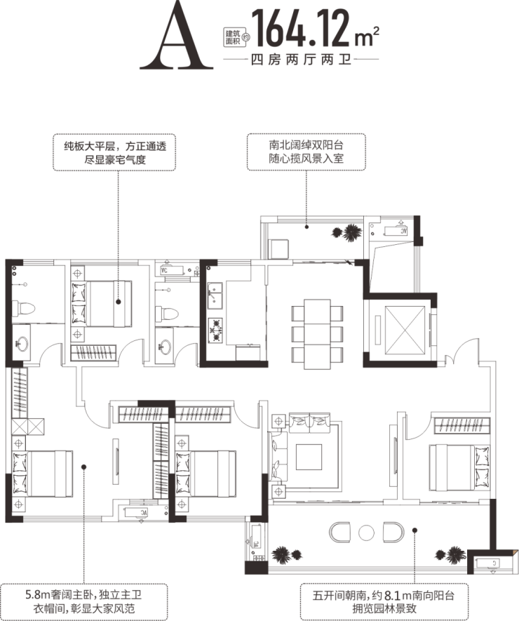 新品主推建面约147㎡舒适四居与164㎡宽境四居,以极致细节演绎改善生活尺度。