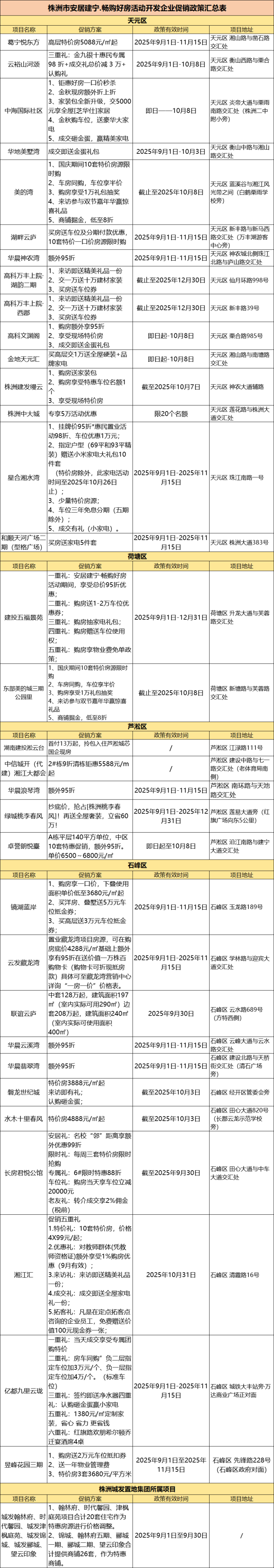 其中,株洲在售楼盘优惠信息已整理成专属表格,涵盖不同区域、不同户型的精选项目,从特价、一口价秒杀到送全屋家装家电大礼包、从赠送车位券到物业管理费等众多福利,诚意满满。