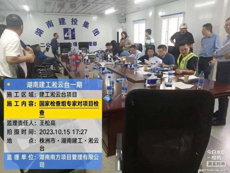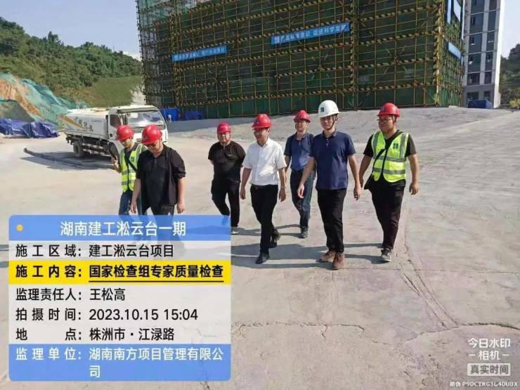 2023年10月15日下午,由湖南省住建厅、省质安站、市住建局各专家组成的住建部“国检”督察组一行“突击”来到湖南建投·淞云台工程项目部,严格按照“全国工程质量安全提升行动督查”文件要求,深入湖南建投·淞云台工地施工现场,对项目现场进行了全面细致的检查。