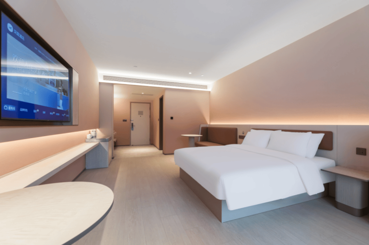 此次开业的汉庭酒店为华住集团3.5升级版本,配备108间高标准客房,并集成自助办理入住、24小时机器人服务、多功能会议室、健身房及洗衣房等设施。酒店设计融入人体工程学理念,优化自然采光与空间布局,同时通过无人化运营提升效能,为商旅及家庭客群提供“高效、安心、舒适”的住宿体验。