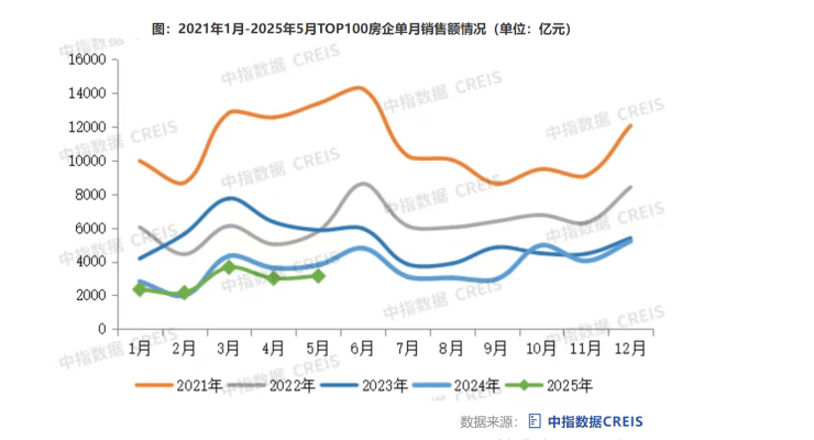 中指研究院监测显示,5月份,百强房企销售额同比下降17.3%,较4月降幅扩大0.5个百分点。