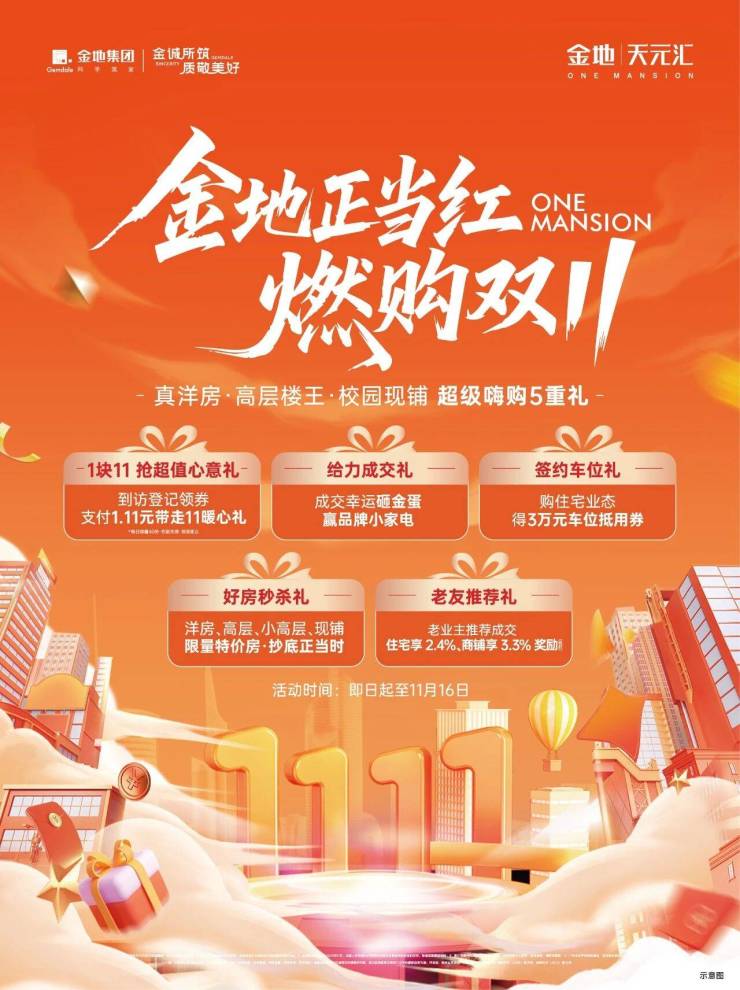 [金地天元汇]金地双11燃购来袭,好房现铺惠购全攻略!