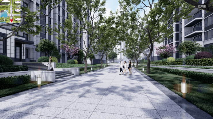 讲究方圆之道,以围合水景打造的社区核心景观,赋予了空间灵动的生命感。通过水瀑中庭进入小区后,引入眼帘的是层次丰富的小区景观,超50m的中央景观阔道,两侧银杏树阵,全冠移植,整齐排列,仿佛回家的仪仗队。