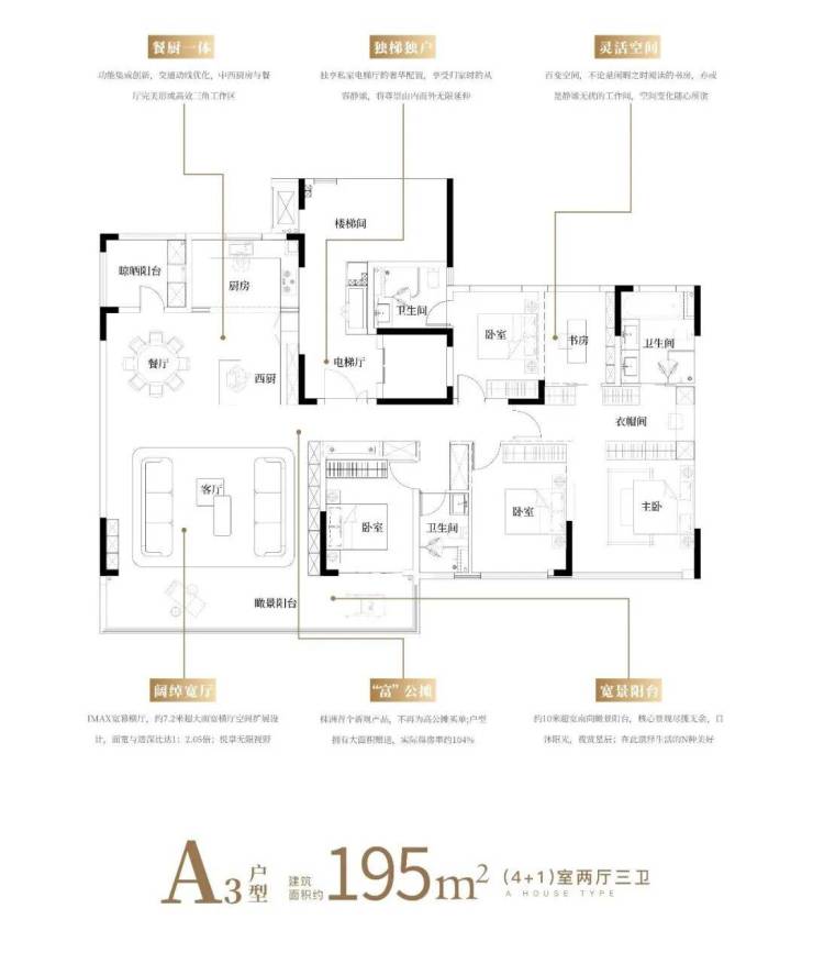 建面约195㎡(4+1)室,株洲终极改善家庭量身定制。