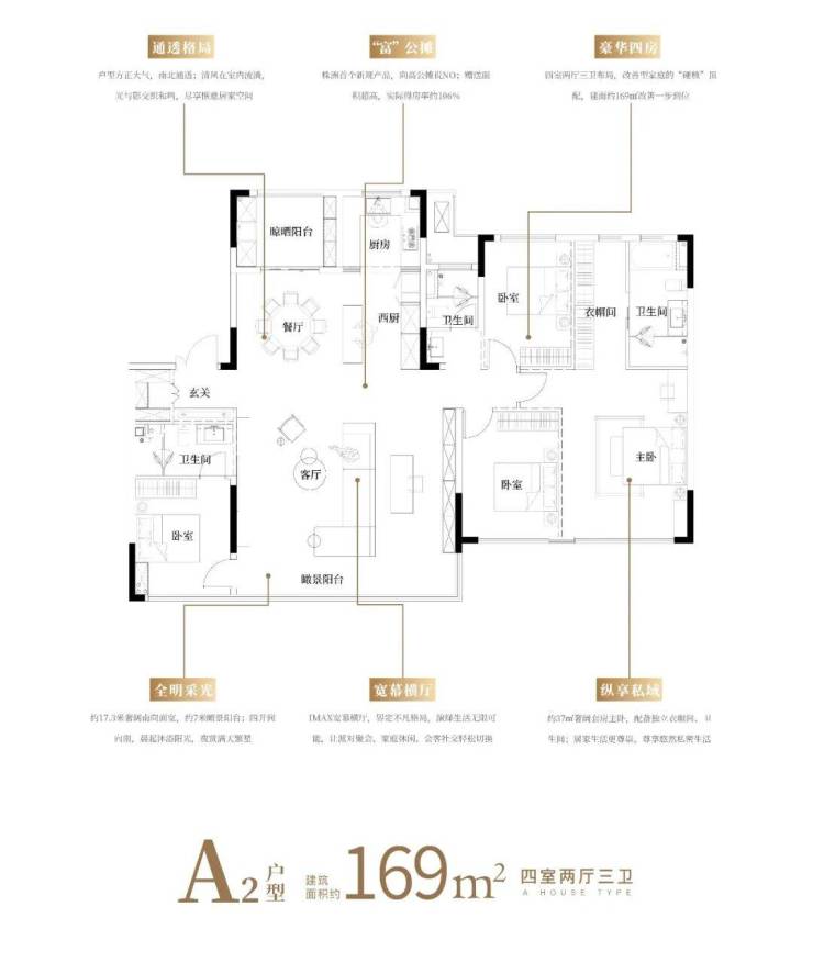 建面约169㎡全能四房(套内实得约179㎡),一步到位的改善优选。