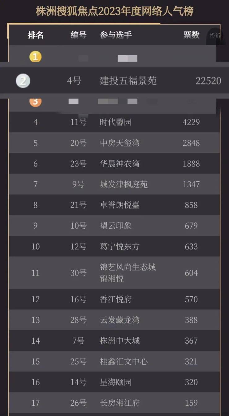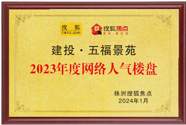 时光履新,新年序开,匠心执笔自有勋章。株洲搜狐焦点2023年度网络人气榜单火热揭晓,作为一年一度互联网房地产领域年度影响力的行业盛典,本次株洲共32个楼盘参与评选。作为株洲品质人居标杆之作的建投·五福景苑,以2.2万余票,荣获2023年度网络人气楼盘!