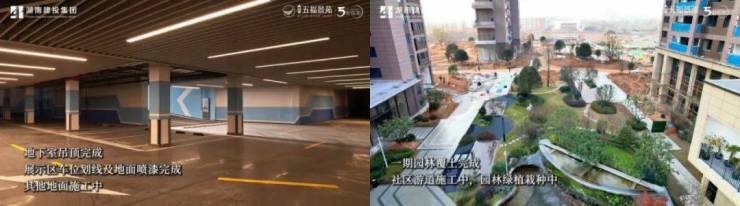 目前项目一期楼栋已全线封顶,架空层及入户大堂精装火热施工中,小区门楼主体封顶并完成外墙施工、公区施工中,地下室吊顶完成、展示区车位划线及地面喷漆完成,一期园林覆土完成,绿植栽种中。