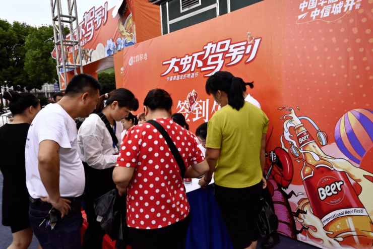 来宾们早早就到达了现场,签到处更是人头攒动,排起了长队,免费领取价值198元龙虾券, 兑换香辣龙虾一份,免费啤酒饮料畅饮。吃货们蓄势待发,等待夜幕的降临,期待狂欢的开始!