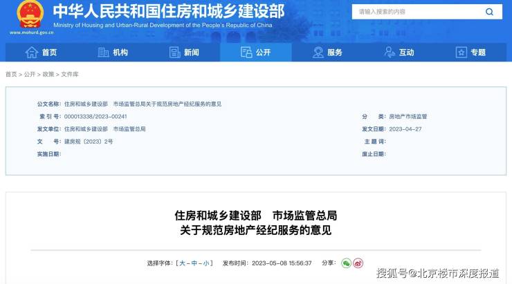 住房和城乡建设部、市场监管总局关于规范房地产经纪服务的具体意见如下: