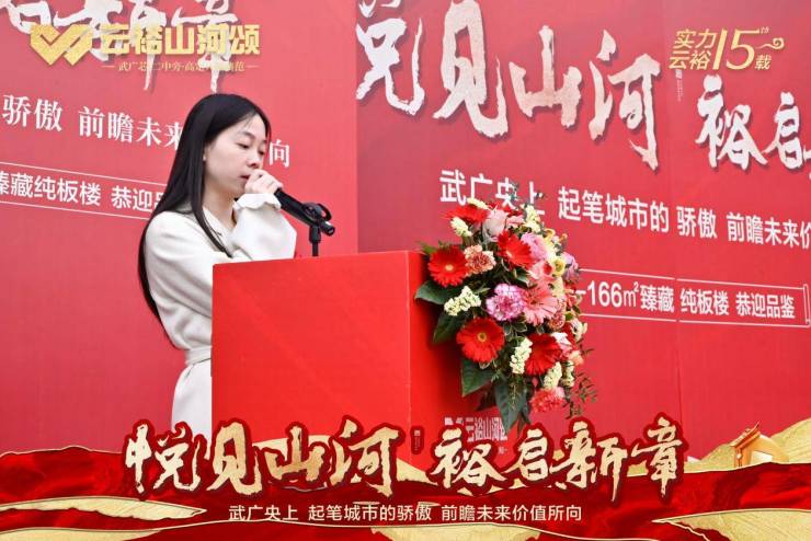 随后领导致辞环节,云裕集团执行总裁——张雅倩女士满怀激情地走上舞台,向所有到场嘉宾表达了诚挚的欢迎与感谢。在讲话中,她不仅分享了云裕山河颂的建设初衷与未来规划,还描绘了项目将为业主带来的美好生活蓝图,让在场的每一个人都对云裕山河颂充满了信心与期待。