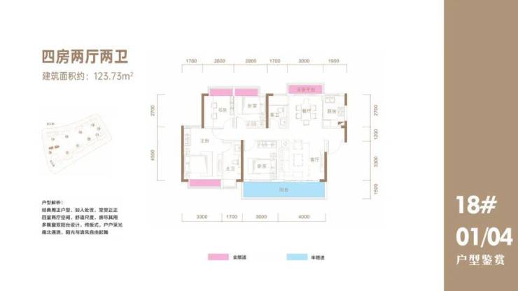 其次,项目在售的建面约123㎡户型采用四房设计,实用性更强,采光通风良好,每个卧室的空间感都很强,不局促。