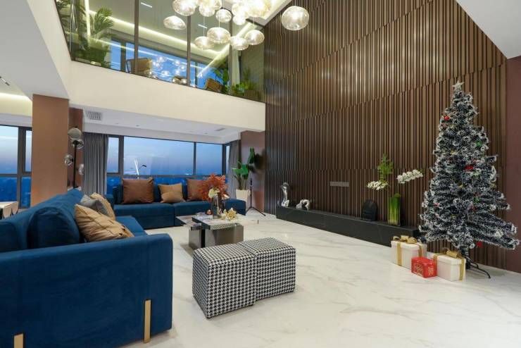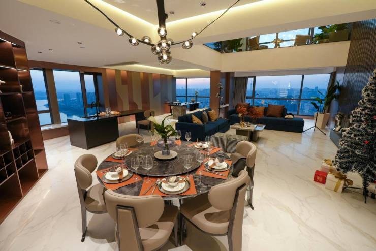 袁达成:当然可以。朗悦台的顶复产品是我们精心雕琢的奢居杰作。先看一楼,一踏入家门,映入眼帘的便是约100平的超级大客厅,开阔的空间感令人震撼。6米的挑高设计,让空间瞬间灵动起来,在这里可以来一场好友派对或是家庭聚会。