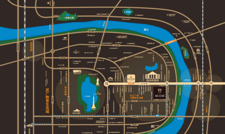项目位于位于河西一桥头,在地理位置上既靠近中心广场,又靠近河西的中芯神农城,周边有着经由数十年积累形成的城市资源,包括便捷的交通、繁华的商业、优越的教育资源等,从区位上就已经打下了坚实的基础。