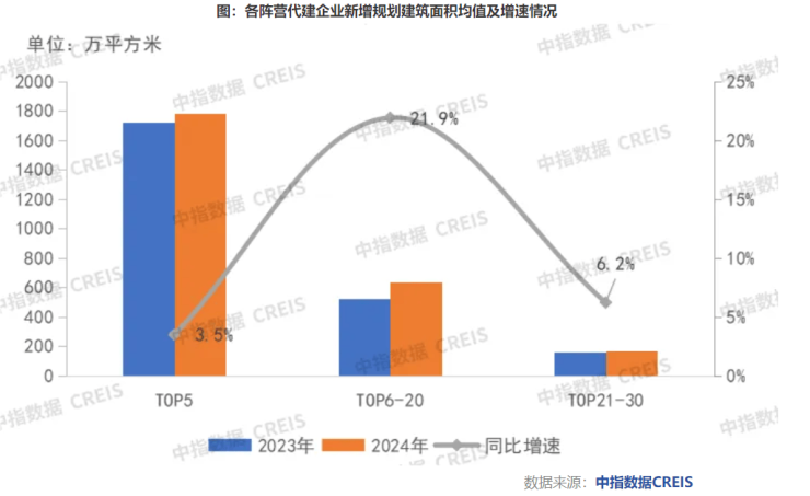 “从各阵营代建企业来看,总体呈现出头部稳健、中部崛起的特征。”中指研究院企业研究总监刘水分析指出,头部企业由于新增规模较大,很难保持快速增长,因而增速较慢,这也符合服务行业规模增速的固有特征。