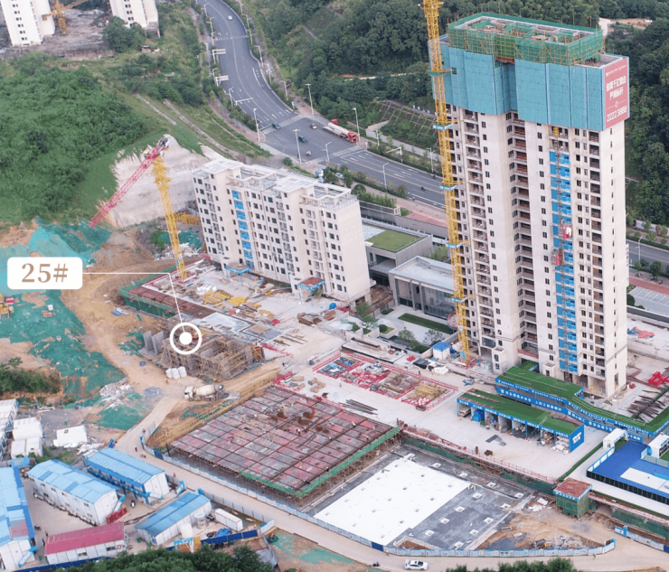 22#栋:结构封顶、砌体抹灰完成、公区精装地砖铺贴施工,外墙涂料准备施工