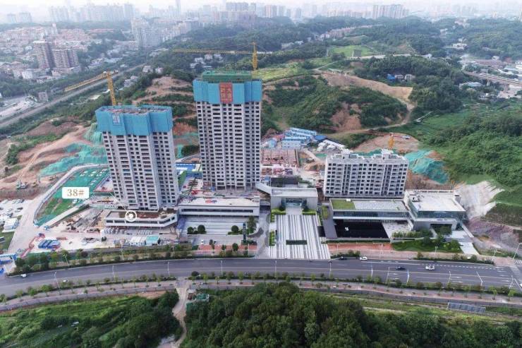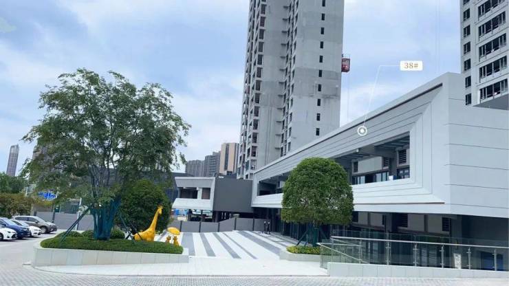 38#栋:结构封顶、外墙涂料完成、室外广场完成
