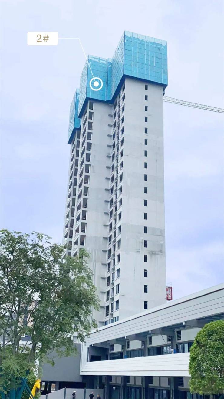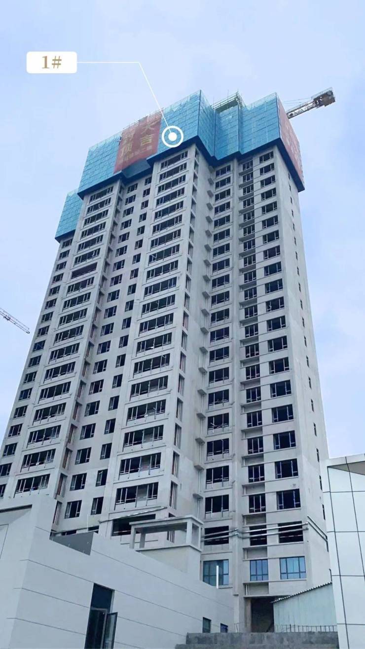 1#栋:结构封顶、砌体完成至20层,负一层过道电梯厅及东侧看房楼梯间至2层电梯厅和过道精装完成