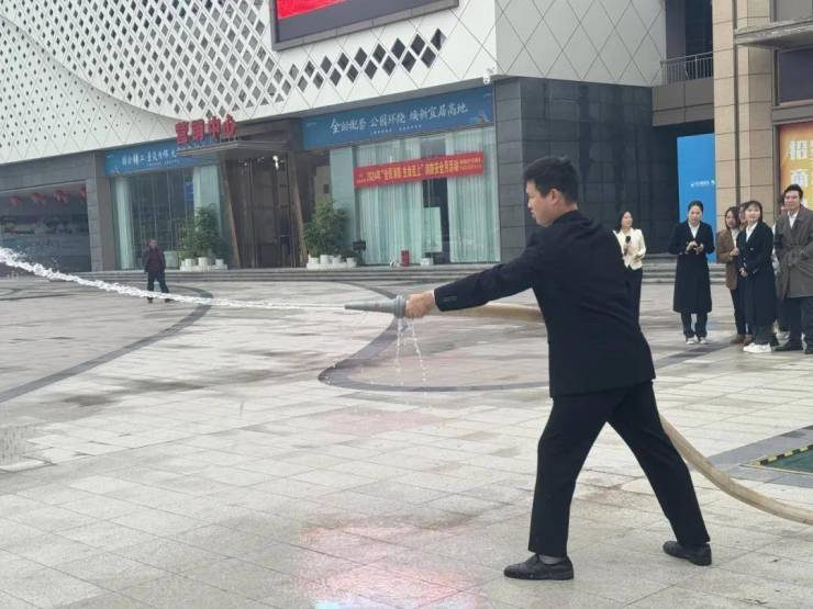 在紧张而充满挑战的实操环节。由物业组织各单位员工对灭火及水枪设备逐一使用“弓步姿势保证重心,紧握灭火器对准火源根部”,动作迅速而准确。紧接着是消防水袋水枪的实操。在这一环节中,不仅让大家对器材使用更熟练,同时为五福景苑社区构筑起一道消防安全防线。