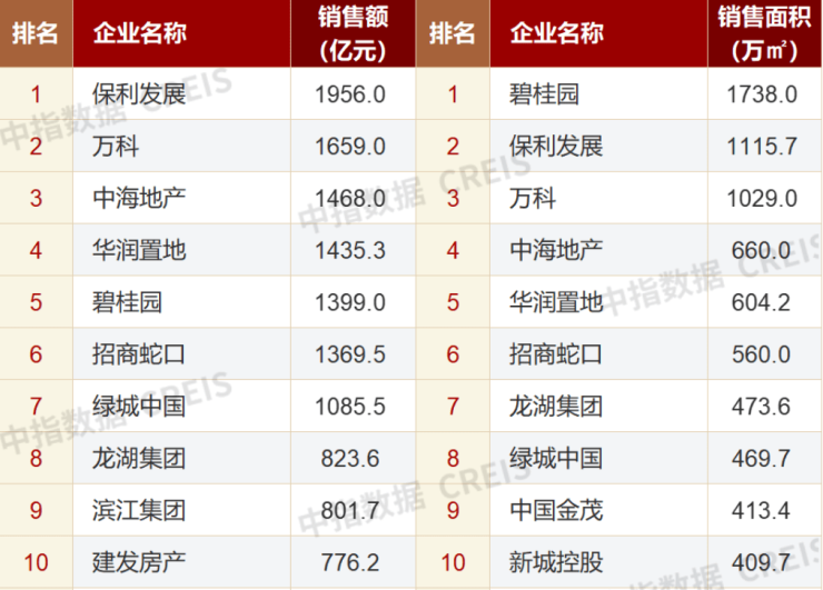 从5月单月的销售业绩来看,记者根据中指研究院数据计算发现,排在前三位的分别是:保利发展为400亿元、万科为325亿元、华润置地为315亿元。