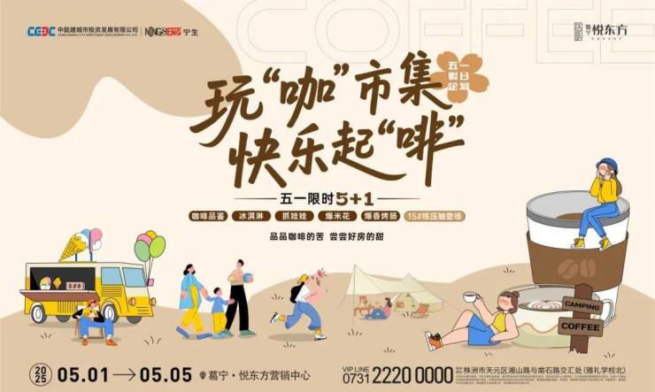 这个五一,”玩咖市集,快乐起啡“,品品咖啡的苦,尝尝好房的甜,一起「帐」量美好时光~来葛宁悦东方,和朋友家人,用一张券开启N种快乐模式~