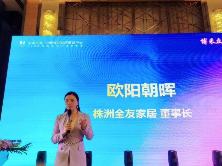 株洲全友家居董事长欧阳朝晖女士与株洲冠珠陶瓷董事长刘小凡女士作为业主代表以及本地优秀经销商代表上台发言。她们独具慧眼选择华美立家·中博智能家居博览中心,在这里开展自己事业的新王国。同时,也号召更多家居建材界的同仁们加入中博的大家庭,一同拥抱新时代下的新机遇。
