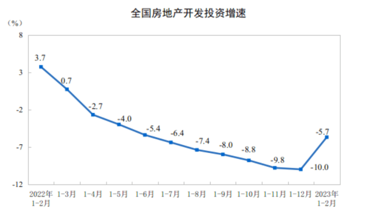 今年1-2月份,全国房地产开发投资同比下降5.7%。图/国家统计局官网