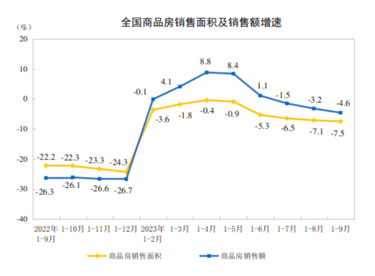 同一天,国家统计局副局长盛来运在国新办举行的2023年前三季度国民经济运行情况发布会上表示,从去年到今年,党中央、国务院高度重视,出台了一系列稳定房地产的优化政策,从现在实施的初步情况来看,积极的效应还是有的。从房地产投资情况来看,房地产投资是在继续下降的,但降幅收窄的。