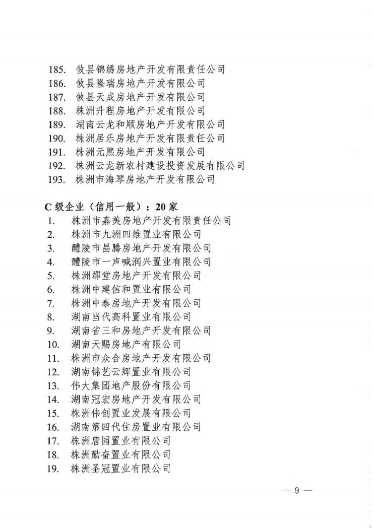其中A级企业包括:株洲高科房地产开发有限公司:项目包括高科文渊阁、高科云水湾等。