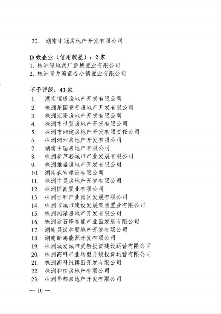 从数据来看,近八成企业(含 A、B 级)保持良好信用记录,显示株洲房地产行业整体经营规范度稳步提升。但 D 级企业的存在和近两成企业未参与评级的情况,也提醒购房者需警惕信用风险。