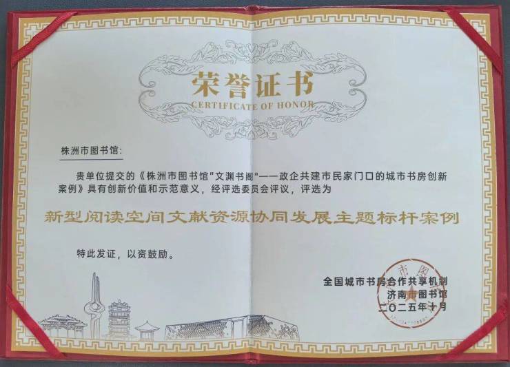 近日,株洲市图书馆与湖南高科控股集团联合打造的“文渊书阁”城市书房,在2025年全国城市书房合作共享机制交流活动中,荣获“新型阅读空间文献资源协同发展主题标杆案例”,成为政企共建文化空间的典范之作。
