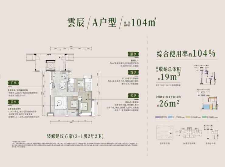 建面约 104㎡雲辰/A户型