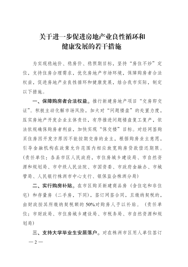 为扩大内需、促进消费、活跃市场,株洲市人民政府印发《关于进一步促进房地产良性循环和健康发展的若干措施》,以下为文件全文。