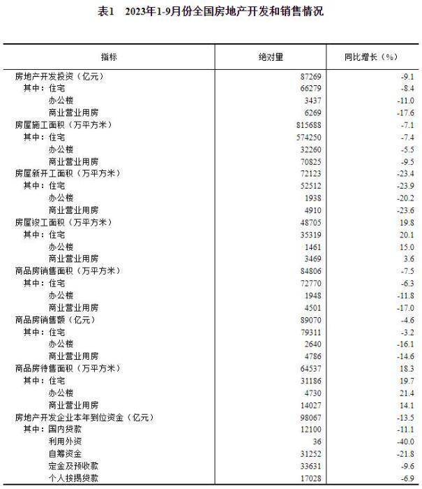 中新网10月18日电 国家统计局网站18日发布1—9月份全国房地产市场基本情况。