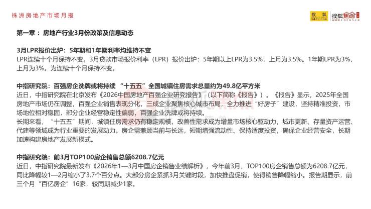 【楼市月报】株洲2026年3月房地产市场月报