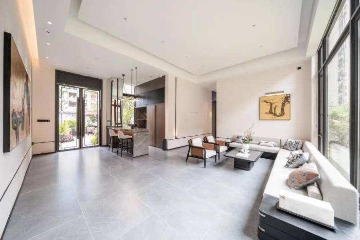“山水行墨,徽风府苑”,取法徽州坐隐园,以坐隐园的合院空间结构为原型。三进归家礼序,“一轴七院”格局空间,门厅为堂,古树环院,入画赏石,伴水探景。