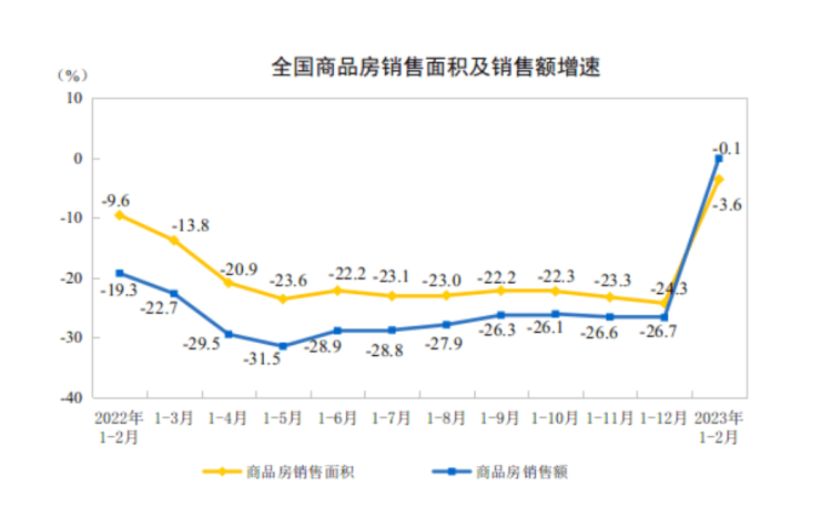 今年前两个月,房地产开发投资与销售指标都在向好。据国家统计局发布的数据显示,今年1-2月份,全国房地产开发投资同比降幅收窄至5.7%;在住宅销售方面,更是经历多月下降后首次回正,住宅销售额同比增长3.5%。